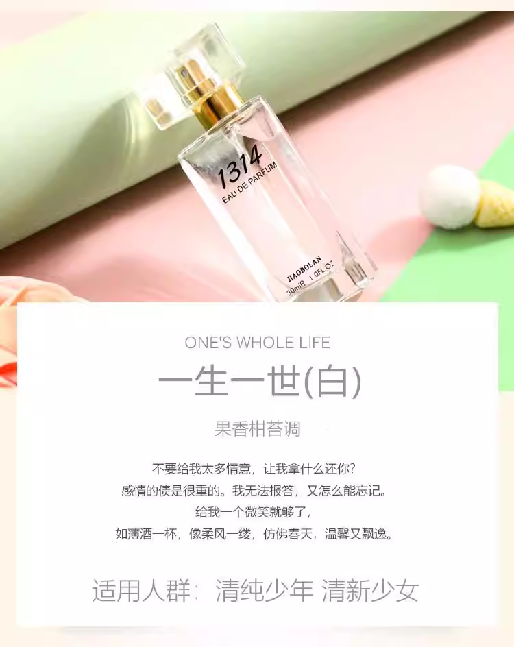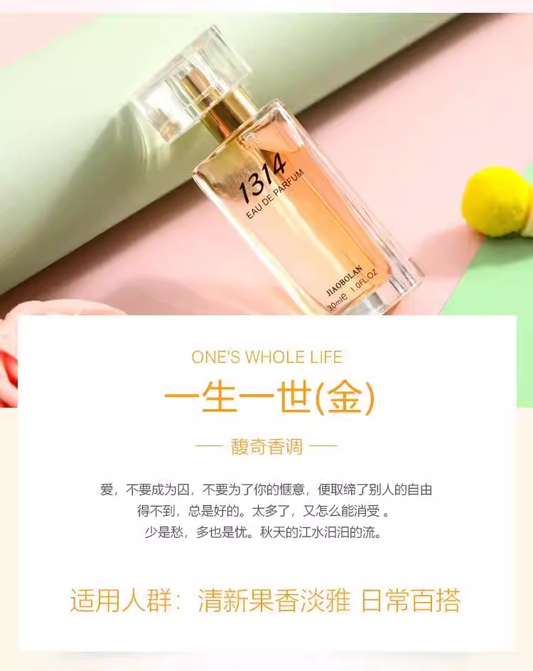 優貝雅1314香水一生一世女士正品持久淡香清新自然少女花果爾蘭妮